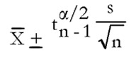 representa la media muestral, cuasi-desviación típica muestral, tamaño muestral y el valor crítico en la tabla t de Student correspondiente. Sustituyendo los valores en nuestra muestra particular, el intervalo vendría dado por los siguientes extremos: