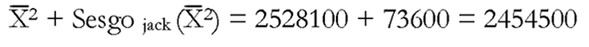 En el caso de la media el estimador jacknife del sesgo es nulo, pero ello no es así para el caso de otros estimadores. Por ejemplo, si quisiéramos estimar el cuadrado de la media, el sesgo estimado hubiera sido el siguiente: