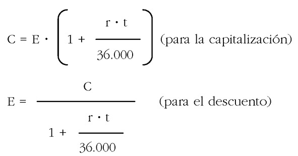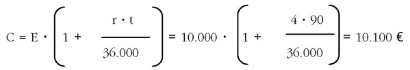 Se utiliza la fórmula del interés simple, pero considerando que el año tiene 360 días en lugar de 365 o 366. Es una práctica habitual en todos los mercados europeos, incluido el inglés, y se aplica al descuento de letras en subasta, a las disposiciones de préstamos que realizan las empresas, y a las liquidaciones trimestrales o mensuales de los préstamos hipotecarios.