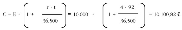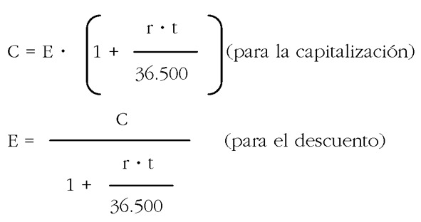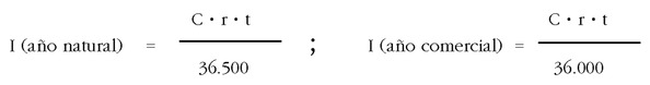 Cuando se realizan operaciones financieras en corto plazo, empleando la ley financiera de capitalización simple, y tal y como hemos indicado en el punto anterior, las entidades financieras utilizan en unos casos el año natural (365 días o 366 días si es bisiesto), y, en otros, el denominado año comercial (360 días). La expresión del interés a pagar en los dos casos sería la siguiente:
