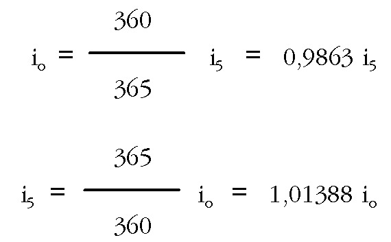 Asimismo, se suele establecer una equivalencia muy clara entre “tipos 365” y “tipos 360”, sin más que igualar ambas expresiones: