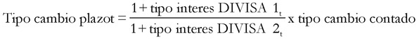 Los precios de contado y plazo de las diferentes monedas se encuentran relacionados a través de la siguiente expresión: