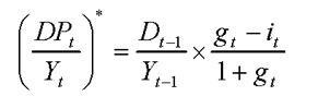 Concretamente, puede obtenerse el valor del déficit primario (DP) que permite estabilizar la Deuda pública en porcentaje de la renta (Y), que vendría dado por la expresión (suponiendo que no hay efectos de ajuste flujo-fondo para simplificar):