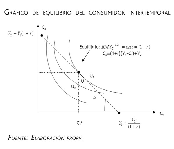 En teoría económica es habitual definir el equilibrio del consumidor sin tener en cuenta el tiempo, es decir, suponiendo que el consumidor maximiza su utilidad dada una renta y unos precios actuales, sin tener en consideración que el individuo puede planificar sus consumos a lo largo del tiempo y puede trasladar parte de sus rentas hacia el futuro, mediante el ahorro, o bien puede adelantar parte de sus rentas futuras hacia el presente mediante la solicitud de un préstamo a una entidad financiera. Sin embargo en el equilibrio convencional, o atemporal, suponemos que el individuo gasta toda su renta en cada momento y que, por tanto, no tiene deudas ni ahorros, ya que siempre se encuentra o trata de encontrarse sobre su recta de balance.