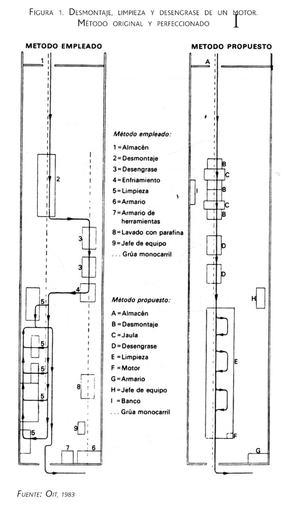 El estudio de métodos es la técnica principal para reducir la cantidad de trabajo, principalmente eliminando movimientos innecesarios del material o de los operarios, desarrollando métodos de trabajo más eficaces. La medición del trabajo, a su vez, es el medio por el cual la dirección puede poner de manifiesto y tratar de eliminar el tiempo improductivo, es decir, el tiempo durante el cual no se ejecuta trabajo productivo por cualquier causa que sea. La medición de trabajo, además de revelar la existencia del tiempo improductivo, también sirve para fijar tiempos tipo de ejecución del trabajo de operaciones.