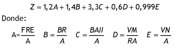 Los componentes que utiliza son a su vez otros ratios ponderados por diferentes coeficientes. Las variables que incluye son: