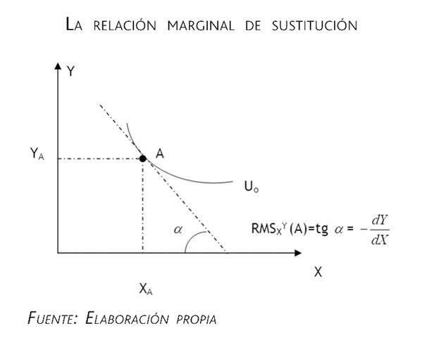 Geométricamente, la RMS expresa la menor pendiente de la curva de indiferencia:
